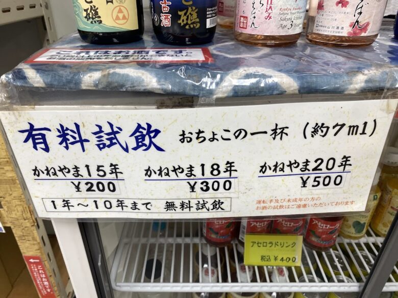この3銘柄は有料にはなりますが、15年~20年古酒(しかもかねやま)をぜひ飲んでもらいたいです。