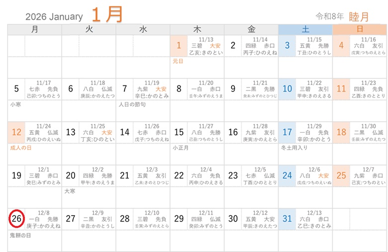 毎年、旧暦の12月8日はムーチーの日。旧暦なので毎年日にちは異なります。沖縄のカレンダーにはしっかり「ムーチー(鬼餅)の日」が記載されるほどの伝統的行事なのです。2026年は1月26日(月)がムーチーの日です!