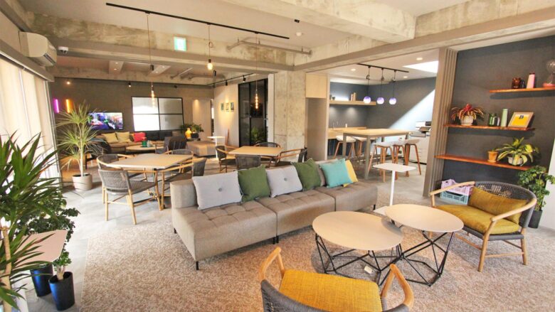 5階にあるコワーキングスペース。ドリンクは飲み放題で、会議室も完備、集中して仕事をするにもいい環境です。