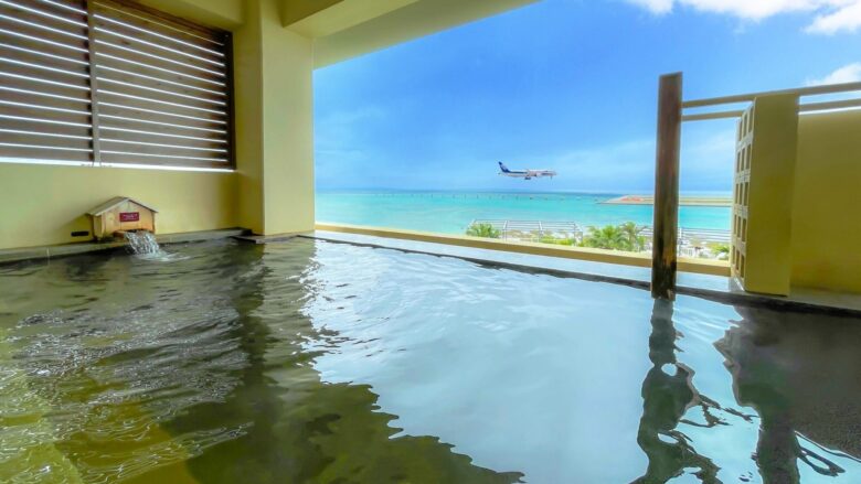 何といっても那覇空港に着陸する飛行機が温泉に入りながら楽しめます。