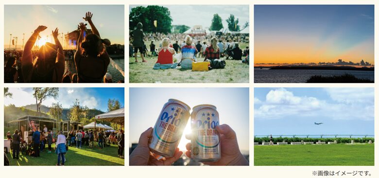那覇空港から車で約15分。新たなフェスの舞台となる瀬長島は、青い海と空を一望でき、海風が心地よく抜ける絶好のロケーション。サンセットに染まる水平線や、夜空にきらめく星々が広がるこの島ならではの景色の中で、オリオンビールを片手に日常から解き放たれるひとときを。