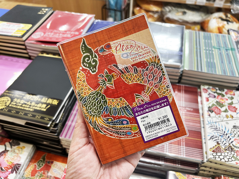 写真の手帳は一番オーソドックスな沖縄手帳。沖縄で一番多く利用されているのではないでしょうか。日別の情報量が多いのが特徴!ジュンク堂那覇店には沖縄手帳・かりゆし手帳をはじめ、たくさんのスケジュール帳があるので自分に合ったものを選べますね!
