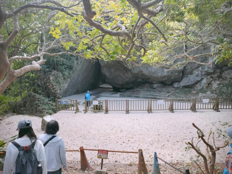 自然の岩が支えあいできたこの三角のトンネル。ここが6番目の拝所「三庫理(さんぐーい)」。このトンネルを抜けると少し開けた場所があり、ここから神の島久高島が望めます。