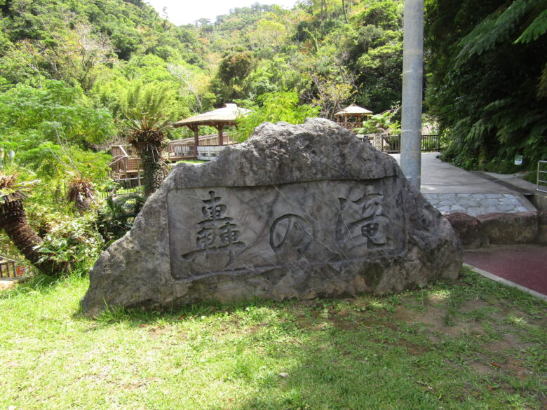轟の滝は名護市数久田(すくた)の自然公園内にあります。1956年に県の名勝地に指定された「轟の滝」は落差28メートル、滝つぼの直径は約20メートル。轟の滝の展望台からは本島最大級の1枚岩で、圧倒的な存在感を示す「石英斑岩」を望むことができます。1804年には尚灝王(しょうこうおう)が納涼殿を建て、巡遊した記録があるそうです。