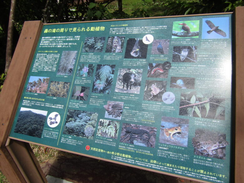 轟の滝周辺には、豊かな自然が広がっていて、植物の他にもこの地域でしか見られないような動物たちも暮らしています。天然記念物や希少野生動物もいるので、見つけても捕獲や採取すると法律に触れるので注意しましょう。