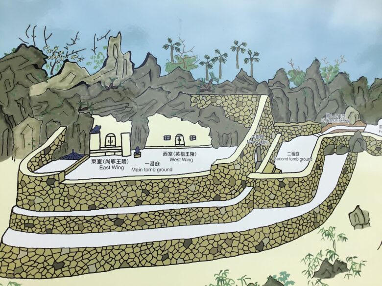第2尚氏7代目琉球王の尚寧王(向かって左)と英祖王(向かって右)が眠る陵墓です。尚寧王がなぜ玉陵でないのか、疑問も出てくるところですが、「ようどれ」とは「夕凪(ユードゥリ)」のことで、安らかに眠るようにという意味から「墓」を意味するようになりました。